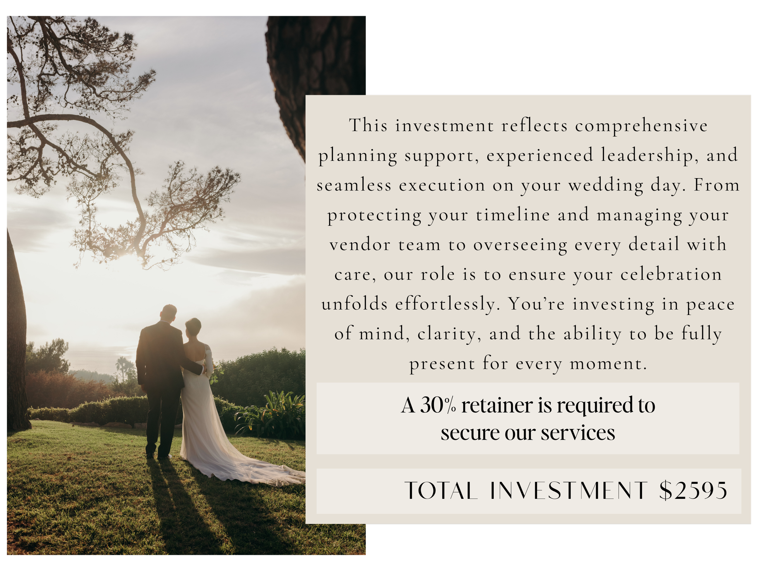 It’s truly an honor to be considered as part of your wedding team. We believe your wedding day is more than an event. It’s a once-in-a-lifetime gathering of the people you love most, and our role is to ensure you feel supported, present, and fully immersed in the experience.